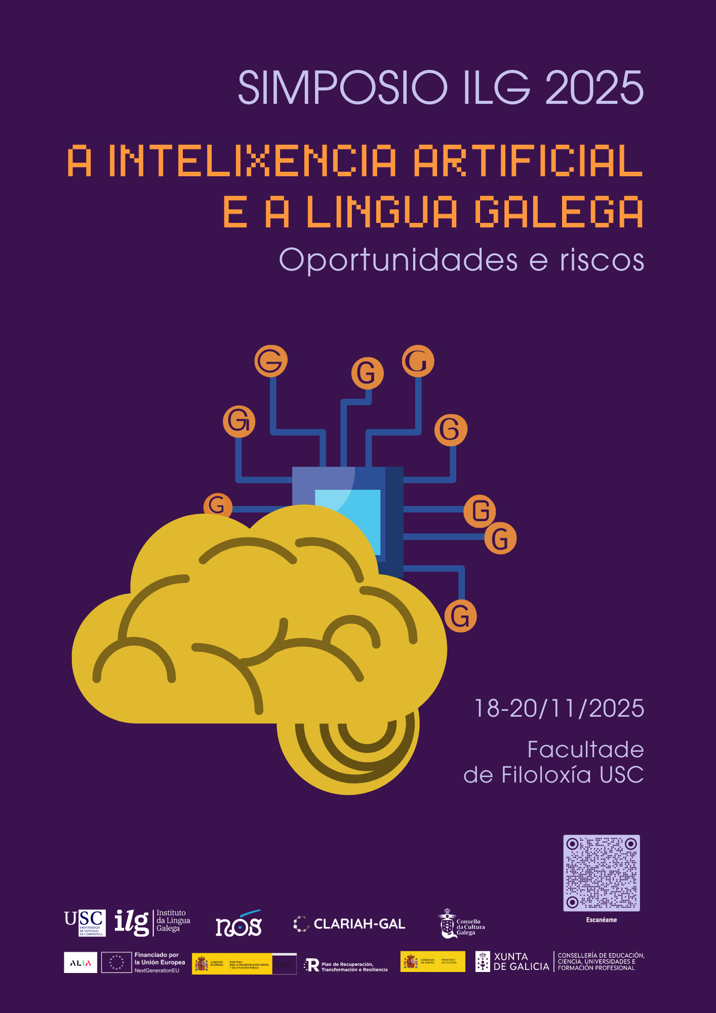 Entre el 18 y el 20 de noviembre tuvo lugar en la Facultad de Filología de la USC el Simposio ILG 2025, dedicado a explorar el impacto de la inteligencia artificial en la lengua gallega. El encuentro ofreció una visión técnica y crítica de las tecnologías lingüísticas actuales, abordando cuestiones éticas, legales y profesionales derivadas de su uso. La iniciativa se enmarca en el Proyecto Nós, que busca garantizar la presencia del gallego en la era digital y aprovechar las nuevas oportunidades que brinda el actual contexto tecnológico. Algunas intervenciones están disponibles en el canal de YouTube del ILG.